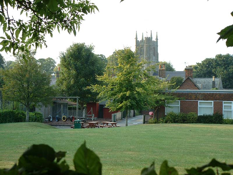 The National School was built in 1844, rebuilt in 1849 and enlarged in 1873. It was replaced in 1970 when the present building, pictured here from the rear with its playing field, was erected behind the original in the High Street. The original school building is now the parish hall for the three local parishes and the schoolmaster's house is a private house. In 2002 there were 47 children aged between 4 and 11 years
