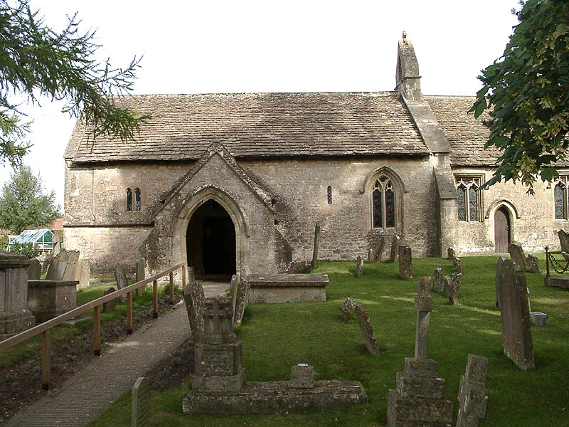 There is a fine Norman doorway with carved animals, including dragons, and foliage while there also is a Norman font and a Norman arch headed window to the east of the porch. A 13th century piscina can be found on the interior of the south wall and there is a scratch, or mass, dial on the exterior. As the centuries progressed the church gradually fell into disrepair with doorways and windows blocked and the walls covered with mortar and whitewash. In 1854 fragments of very good wall paintings, thought to be 15th century, were discovered but these were unfortunately destroyed by exposure to air. In 1860 the church was restored by E.W. Godwin and in 1865 the west window was replaced after being damaged. The church registers from 1584 (christenings), 1589 (marriages) and 1587 (burials), other than those in current use, are held in the Wiltshire and Swindon Record Office.