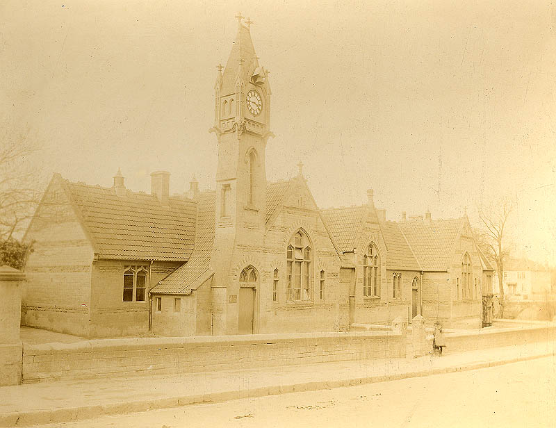 This elementary Board school was built in 1875 at a cost of £2,700 with accommodation for 400 pupils. There were two separate schools - boys, and girls and infants in the same building, with different entrances. The boys were taught by a master (Mr C. Hewlett) and one teacher (Mr R. Trowbridge) while there was a mistress (Miss C. Gray) for the girls and an infant teacher (Miss B. Gray). There were graded fees with the children of labourers paying 2d ( about 1p) a week, those of artisans paying 4d (about 1.75p) and those of tradesmen paying 6d (2.5p). All children who paid in advance by the quarter (every 3 months) had their school books, slates and pencils provided free of extra cost. A Night School was run by the vicar during the winter months on Mondays, Wednesdays and Fridays at 7.30 p.m. Fees were 1 shilling (5p) a month of 4d (about 1.75p) a week.