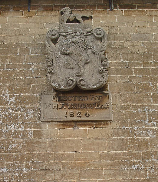 The school was planned to be ready in 1821 to mark the 21st birthday of William Henry Fox Talbot. It was provided by Henry Fox Talbot but owing to the fact that cottages had to be demolished on the site and new homes found for the displaced tenants the school did not open until 1824. The school was built to accommodate 100 pupils of all ages and the Talbot coat of arms, pictured here, were on the wall of the original building. The school would have always been connected with the church and at some point, probably in the 1840s or 1850s, the school adopted the principles of the National Society and became Lacock National School, under which heading further information can be found.