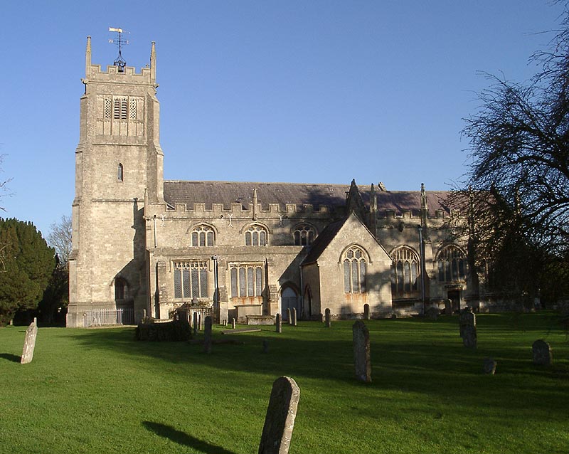 In 1086 Romuld was the priest of Melksham but there is no evidence for a Saxon church, although this could well have been a wooden building of which no trace has been found. The Saxon settlement was certainly around the site of the present church and it seems reasonable to suppose that there was a place of worship here then. The foundation of the present church dates from the Norman period with the earliest part of the fabric to be found in the chancel walls. A Norman string course of c.1130 indicates that the present church, less the tower, is the same length as the Norman one. In the 14th century the church was widened by the addition of the south ailse, but the major rebuilding occurred in the 15th century when, as in neighbouring communities, the town was expanding and becoming more prosperous. A chapel, Lady Chapel, clerestory and north and south porches were added, all in the Perpendicular style. In the 16th century a central tower was added, perhaps indicating the greater wealth and importance of the town brought about by the cloth industry. This tower was taken down and rebuilt at the western end of the church in the 1845 retoration by T.H. Wyatt. He also added a vestry and removed the galleries and the south porch. This was the last major restoration and the most drastic considering what was destroyed. There is a peal of 8 bells, which were recast in 1924 and on a south east buttress is a medieval sundial or sratch dial. In the church yard is a good selection of late 18th and early 19th century chest tombs. One of the best known incumbents was Bohun Fox, vicar from 1697 to 1750, who was a remarkable and well-liked man. He was a staunch opponent of Quakerism, although several Quakers were his friends, but he pioneered popular education in the town and left an endowment for the schooling of poor boys. The registers, apart from those in current use, from 1568 (christenings and burials) and 1569 (marriages) are held in the Wiltshire and Swindon Record Office. Near the church is the remaining part of a tithe barn.