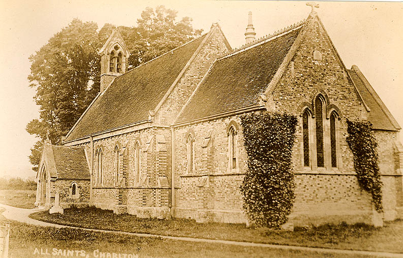 Charlton was founded in Saxon times but if it had a church then the site has been long forgotten. The village was probably a planned settlement in medieval times but did not have a church and the inhabitants would have worshipped at nearby Standlynch church or have travelled to Downton. It was not until 1851 that the Church of All Saints was built, partly at the expense of Horatio, Lord Nelson, to serve the tithings of Charlton and Witherington. It is in the Early English style, in red and purple brick, and was designed by T.H. Wyatt. There is a chancel, a nave with a north transept that was added in 1891, and a south porch.