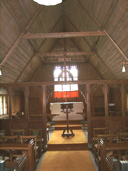 Modern settlement at Sandy Lane began in the 18th century and it is very much an estate village. Ecclesiastically it had come under Derry Hill, but in 1864 it was transferred to the new parish of Chittoe. The church of St. Nicholas was built in 1892 as a mission church, to the design of J.H. Hopkins. It is small and of an unusual timber construction with a steep thatched roof. The timbering is in an A form with 6 pairs of trusses resting on brick sleeper walls. The walls of the church consist of 2 timber sections with sawdust rammed between. All fittings are made of wood, except the 19th century brass oil lamps. In 1980 Chittoe church was declared redundant and Bromham and Chittoe parishes were united as a new parish of Bromham, Chittoe and Sandy Lane. Sandy Lane church became a chapel of ease in the new parish. In 1981 the church was rededicated with the present joint dedication.