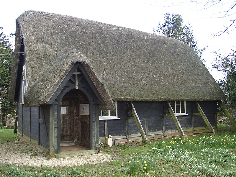 Modern settlement at Sandy Lane began in the 18th century and it is very much an estate village. Ecclesiastically it had come under Derry Hill, but in 1864 it was transferred to the new parish of Chittoe. The church of St. Nicholas was built in 1892 as a mission church, to the design of J.H. Hopkins. It is small and of an unusual timber construction with a steep thatched roof. The timbering is in an A form with 6 pairs of trusses resting on brick sleeper walls. The walls of the church consist of 2 timber sections with sawdust rammed between. All fittings are made of wood, except the 19th century brass oil lamps. In 1980 Chittoe church was declared redundant and Bromham and Chittoe parishes were united as a new parish of Bromham, Chittoe and Sandy Lane. Sandy Lane church became a chapel of ease in the new parish. In 1981 the church was rededicated with the present joint dedication.