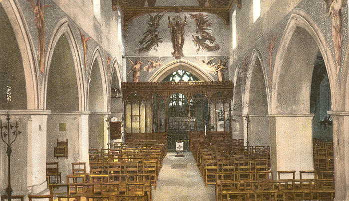 There was a Saxon church here and it is likely to have been built before 940 as it was described as being on the royal estate. Pewsey had been held by King Alfred (died 899) and it descended in the royal family until given to St. Peter's Abbey at Winchester in 940. It is said that on his return from a victory over the Danes, King Alfred announced from the church door that the day (14th September, Holy Cross Day) should be a feast day forever, and that this is the origin of the famous Pewsey Feast. By 1086 the small estate attached to the church was held by Rainbold the priest and a Norman church with a nave, chancel, and, possibly an apse, replaced the Saxon one. It is possible that the foundations of sarsen stone may have come from the Saxon church. The nave is of the 12th century and two aisles were added later, probably in the 13th century. The chancel was rebuilt in the later 13th century as it had collapsed; the chancel arch and the western part of the south arcade were added at the same time. In the 14th century the nave roof was rebuilt and a clerestory formed at the same time.