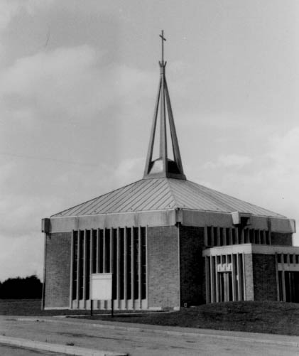 The church was established as a chapel of ease to St. Andrew's to serve the area of Rowden, Lowden and Sheldon which, in the 1880s, had a population of about 1,000. The foundation stone was laid on 20th July 1885 and the church opened on 19th November 1886. It was in stone with red brick dressings and had a nave, north and south aisles, a chancel and apse. It was replaced by a new church in Biddestone Road. The foundation stone was laid on 27th June 1967 and the church was consecrated on 7th December 1968. This is a modern design, built of reconstituted stone, with a copper roof and fibre glass spire which caused early problems. It is a six sided building with no internal supports.