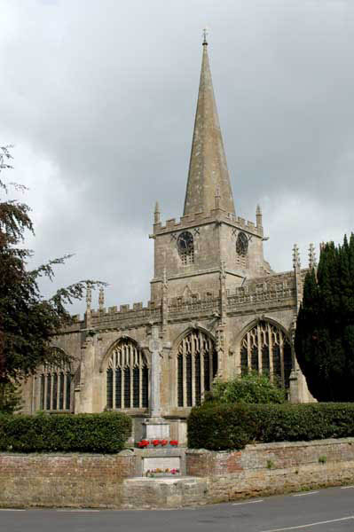 As a priest is recorded in the Domesday Book (1086) it is most likely that there was a Saxon church here. The Norman church was built in the early 12th century and consisted of a nave and chancel only. Of this part of the west and north walls of the nave remain. The church was rebuilt in the 13th century with a south transept and central tower while in the 14th century an aisle and porch were added on the south side. The octagonal font is of the 15th century. In the late 15th century the Tocotes chapel was built, containing rich furnishings of that century. In 1492 a license for a chantry chapel had been granted to Sir Roger Tocotes and Richard Beauchamp, Lord St. Armand, to be built on the south side of the chancel. The south transept was rebuilt in the same stlye as the chapel, which in the 17th century became the Bayntun Chapel. Also in the late 15th or early 16th century the upper part of the tower was rebuilt. The church suffered considerable damage during the Parliamentary period and extensive repairs were undertaken in 1661.In the 18th century a spectacular entertainment was provided by a steeple flyer who 'flew' down a rope stretched between the church steeple and a tree. Unfortunately the steeple did not stand the stress of the steeple flier and his board and was partially pulled down.It had to be rebuilt.