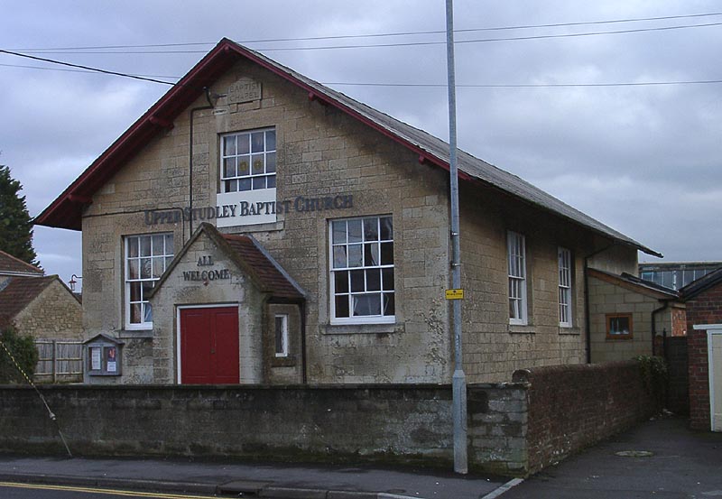 From 1829 a group of Baptists met in three cottages in Upper Studley and in 1831 they rented a house opposite the present chapel. With the addition of a gallery this could accommodate 170 people. A Sunday school was started but by 1842 the congregation was not thriving. They revived and in 1849 land opposite the house on Frome Road was bought and in 1850 the present chapel was built and the house given up. The money for this was provided by Samuel Salter. In 1863 a schoolroom was built. The congregation declined after the building of St. John's Church and in 1890 there were only 19 members and 51 in the Sunday school. The congregation revived again and is still thriving today.