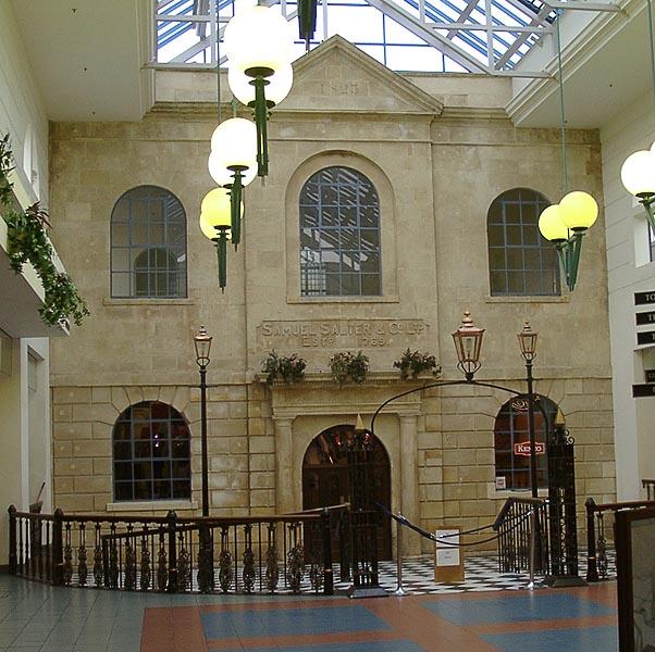 This was founded in 1821 by a group who migrated from the Back Street Baptist chapel. They first met in the Back Street Baptist Sunday schoolroom and later in the converted warehouse on Wicker Hill that had been used by the early congregation of the Zion Baptist chapel. In 1822 they bought a site in The Courts, later Court Street and now in the Shires shopping mall, and erected a chapel which was opened in 1823, pictured here. By 1829 the congregation numbered 400 and in 1840 a Sunday schoolroom was built. In 1856 the graveyard was closed when the new cemetery was built. In 1862 the fire that destroyed the adjacent cloth factory buildings slightly damaged the chapel. In 1868 new galleries to accommodate the growing congregation were added and these overlooked the high box pews on the ground floor. In 1890 the chapel was renovated and then had two galleries, one above the other, with a total of 840 sittings. The membership was 230 with 450 schoolchildren and a lending library.