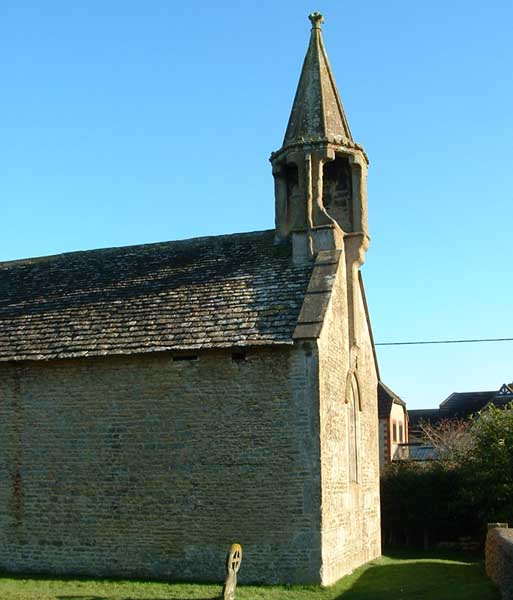 A chapel here may have been served from Malmesbury in the 12th century and a plan made before the church was rebuilt in the 19th century suggests a 12th century origin for the structure. It was a long, narrow building of which the earliest surviving record dates from 1341. All that now remains of the earlier church is a 15th century south doorway, an octagonal west bellcot, and a screen that divided the chancel from the nave, and a 17th century pulpit. The church was dedicated to All Saints by 1763. This will always have been a small church with a fairly small congregation, although the attendance of 38 on Census Sunday in 1851 was said to be smaller than usual.