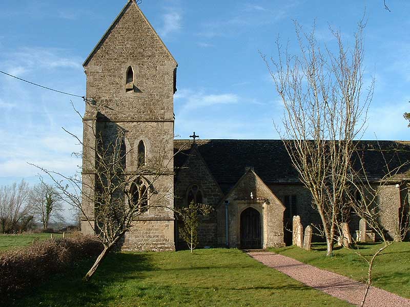 The church was built in the 12th century and was originally served from Malmesbury. It is of stone rubble and ashlar and the small, and almost square, chancel may be original. The east window was replaced in the 13th century while in the 14th century the piscina was added to the chancel. In the 15th century new windows were inserted in the south and west walls of the nave and the south wall of the chancel. The porch was added in the late 15th or early 16th century. The dedication to the Holy Rood was in use by 1763. In the late 18th and early 19th centuries services were held on alternate Sundays with Corston. The chancel was refitted in 1849 and a 14th century style window inserted in the north wall. The tower with its saddleback roof and baptistry were added in 1862 and may have replaced an earlier bellcot. On Census Sunday in 1851 there were 80 people at the afternoon service, which was said to be larger than the usual congregation.