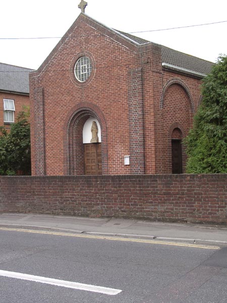In the 1670s there was one Catholic in the parish, Giles Adlam, a fuller, but by 1683 there were said to be none. In the 1930s Westbury Catholics went by coach to worship in Trowbridge but by 1938 they were building their own church in West End. This was completed in December 1938. During the Second World War Italian prisoners of war attended mass here. There is no resident priest but the congregation and its sacristan are served from Trowbridge.
