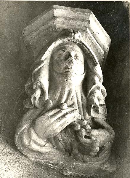 All Saints is the most beautiful of the Bourne Valley churches and is an excellent example of the Decorated style that is rare in Wiltshire. Idmiston had a tradition of remarkable stone carving and there are many good gargoyles on this flint and limestone church. The church seems to have its origins in the 12th century and the earliest part is the lower section of the tower, which is Norman. The present plain chancel was built in the early 13th century and has a piscina in the south wall of the sanctuary. In the late 13th or early 14th century the nave was rebuilt, as was the east arch of the tower. There are 37 stone corbels, one is pictured here, with well carved faces, showing many expressions, and believed to be based on contemporary villagers. An interesting selection of clothes and headwear is also depicted. There are also carved faces on the roof timbers, but these are in a poorer state of preservation. The porch and priest's room, and the two aisles are 14th century; the arcades of the latter are beautiful examples of Decorated work. Also from this century is the font, in Purbeck marble; it is octagonal and on a stem and base. Around 1600 the stone spire on the tower was taken down and a wooden replacement built.