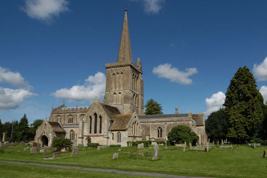 There is a good possibility that there was a Saxon church here and from 1091 the dean and chapter of Salisbury Cathedral were patrons of the living. If there was no Saxon church there must have been an early Norman one, but as a new church was built in the second half of the 12th century it would seem more likely that this replaced a Saxon church than one less than a hundred years old. The 12th century church was of dressed stone and consisted of a chancel, nave and aisles. In the 13th century an Early English central tower was built, or rebuilt, and a chantry chapel, dedicated to our Lady of the Bower, was built abutting the south transept. A porch with vaulted ceiling was added in the 14th century while in the 15th century a spire, rising to 135 feet, and stair turret were added to the tower. In the same century the north and south walls of the aisles were rebuilt and raised, the nave walls raised and the original clerestory windows blocked and new traceried windows created.