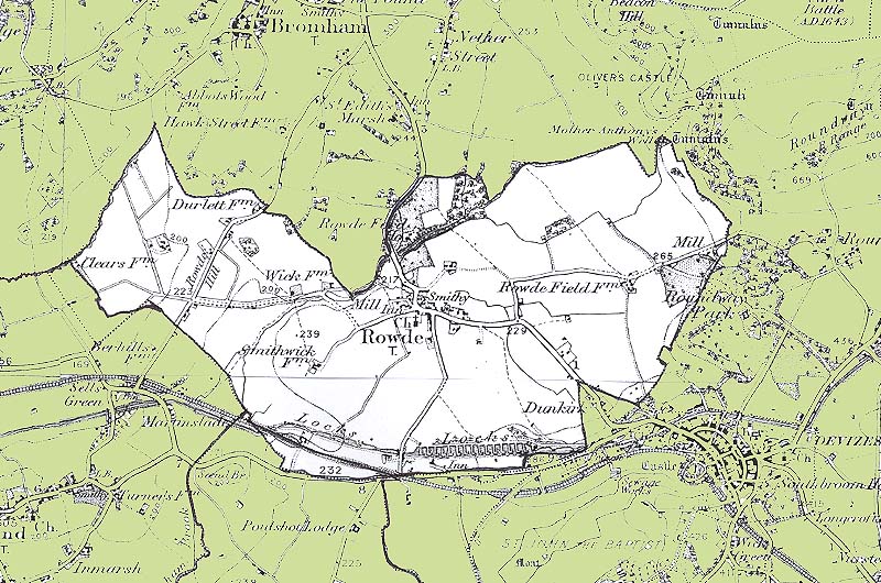 From the Ordnance Survey 1896 revision of the one inch to one mile map. The modern civil parish boundary has been superimposed