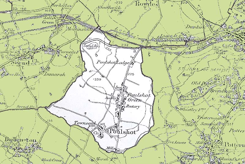 From the Ordnance Survey 1896 revision of the one inch to one mile map. The modern civil parish boundary has been superimposed
