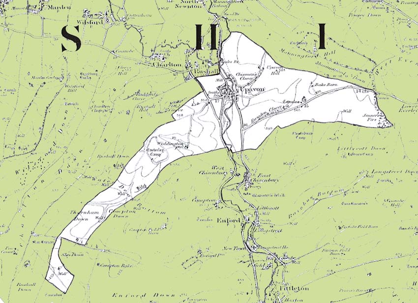 From the Ordnance Survey 1896 revision of the one inch to one mile map. The modern civil parish boundary has been superimposed.