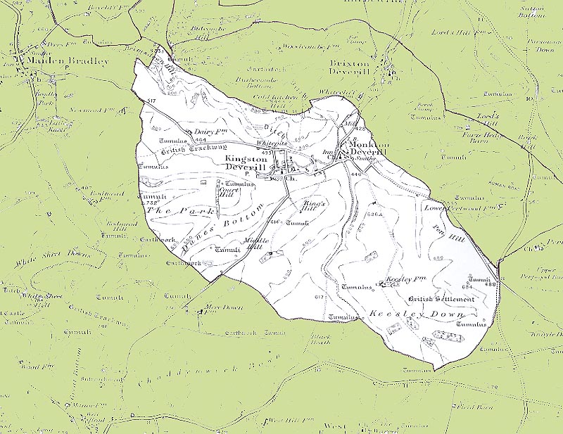 From the Ordnance Survey 1896 revision of the one inch to one mile map. The modern civil parish boundary has been superimposed.