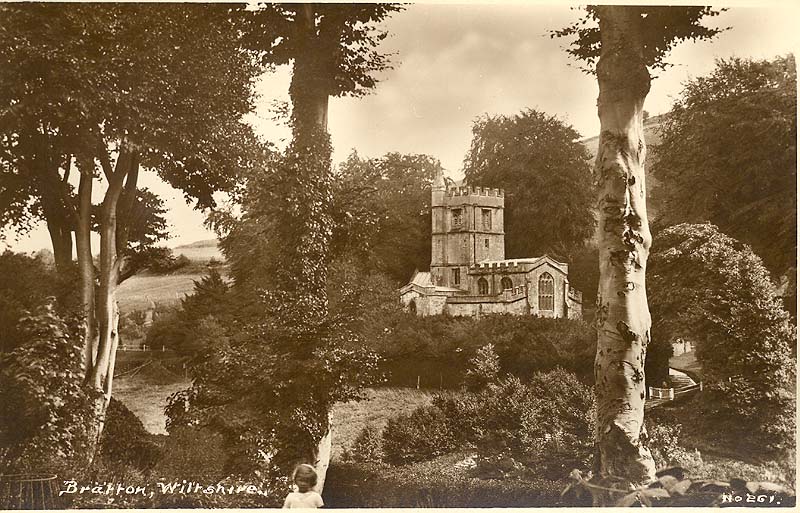 The present parish of Bratton is formed of several small early communities with the church belonging to one of these, Littlestoke, which has disappeared. It is possible that there was a Saxon church on this site as some of the surviving carvings are Saxon or early Norman and it has been shown that a central Norman tower could have been inserted into a Saxon church on the site. The church is built on the side of a green valley, on the northern edge of Salisbury Plain; Littlestoke was in a coombe below the church and seems to have disappeared in late medieval times, or slightly later. Although it is believed that there was a large house near the church, it was reported in 1640 that there were then no houses near the church and so the whole of the village had gone some time before this date. From 14th century records it is evident that there was at least one chantry chapel in the church, and parts of the present walls of the transepts could date from the medieval period and have been home to this chapel.