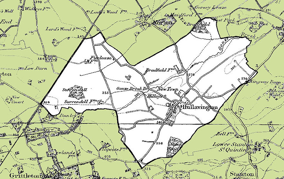 From the Ordnance Survey 1896 revision of the one inch to one mile map. The modern civil parish boundary has been superimposed.