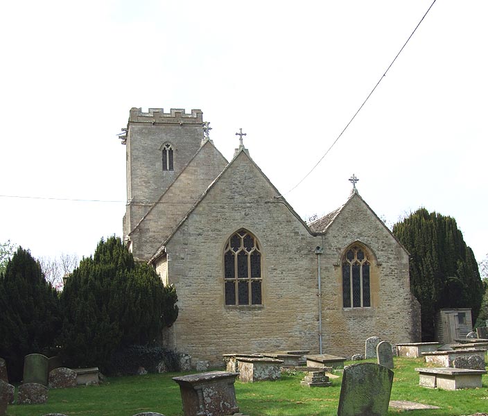 The church of the Holy Cross was built between the 12th and the 15th centuries and was restored in 1876. It is built of stone and consists of a chancel with north chapel, a nave with north and south aisles and porches, and a west tower. It was standing in the late 12th century, when a new chancel arch and a north arcade were built. The tub font, carved with chevrons and palmettes, is also from this century.