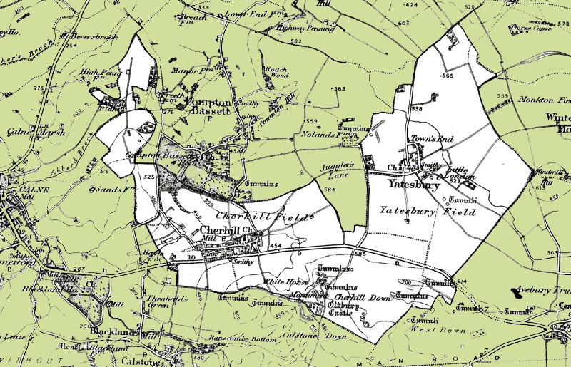 From the Ordnance Survey 1890s revision of the one inch to one mile map. The modern civil parish boundary, as it was until 2010, has been superimposed.