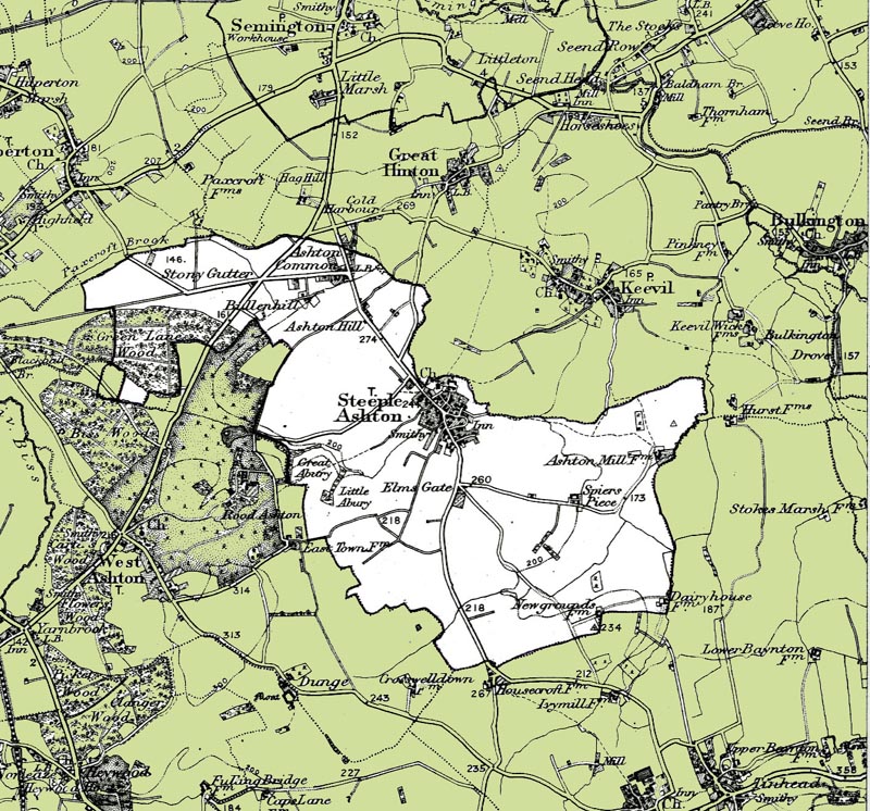 From the Ordnance Survey 1896 revision of the one inch to one mile map. The modern civil parish boundary has been superimposed.