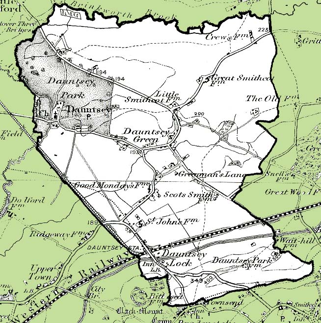 From the Ordnance Survey 1890s revision of the one inch to one mile map. The modern civil parish boundary has been superimposed.