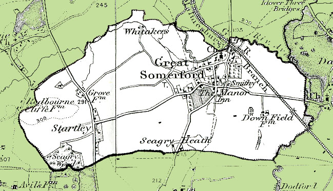 From the Ordnance Survey 1890s revision of the one inch to one mile map. The modern civil parish boundary has been superimposed.