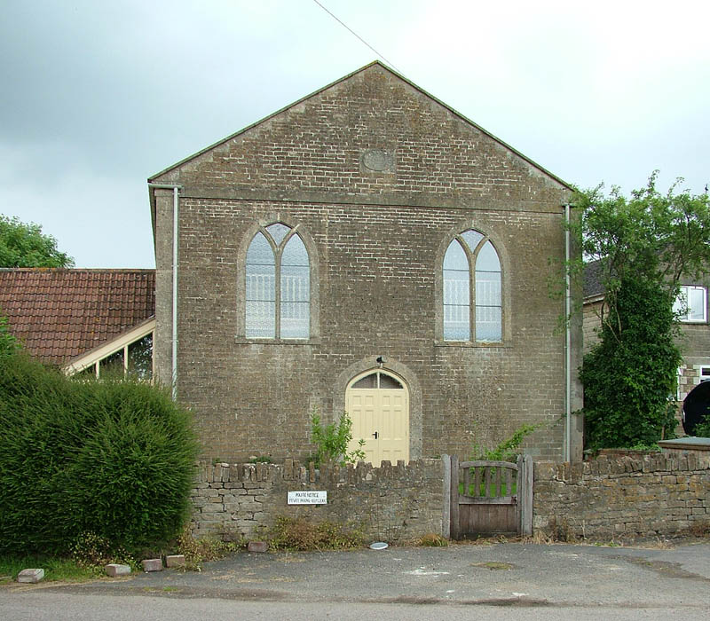 The chapel is dated 1836 and is situated near the main road on Avon Weir Lane at the approach to the village. It is constructed from rubble stone with a squared rubble front. The chapel’s most noticeable and elegant features are the two stone tracery windows that cover a large proportion of wall at the front of the church. The windowless red-brick north wall was an addition in 1909 and was built as a schoolroom. The chapel is Grade 2 listed and was closed in 1998, afterwards being converted into a house.