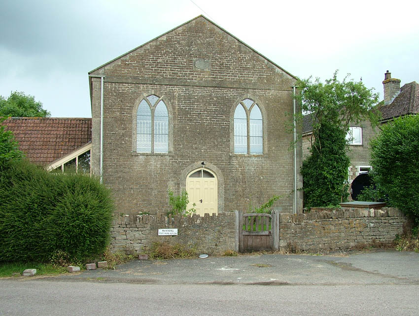 The chapel is dated 1836 and is situated near the main road on Avon Weir Lane at the approach to the village. It is constructed from rubble stone with a squared rubble front. The chapel’s most noticeable and elegant features are the two stone tracery windows that cover a large proportion of wall at the front of the church. The windowless red-brick north wall was an addition in 1909 and was built as a schoolroom. The chapel is Grade 2 listed and was closed in 1998, afterwards being converted into a house.