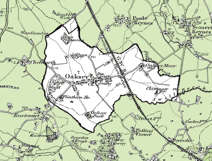 From the Ordnance Survey 1890s revision of the one inch to one mile map.The modern civil parish boundary has been superimposed.