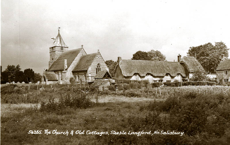 There was apparently a church standing here in the 12th century. The present church was constructed out of flint and ashlar. There is a chancel with a north vestry, a nave with a north aisle and south porch 15th or early 16th century), and a west tower with a short lead spire. Its 12th century font is made of Purbeck marble and both chancel and tower arches are 13th century. There is also a Jacobean pulpit and the north aisle was added in the 15th century. The church was rebuilt extensively in the 14th century and re-dedicated in 1326.. The spire, which some believe is responsible for the “Steeple” part of the village’s name, was added in 1589.