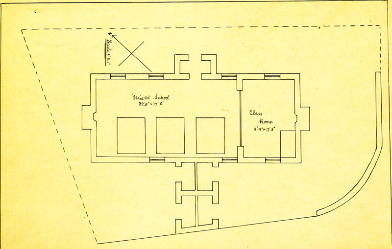 In the second half of the 19th century children paid a few pence per week to attend the school. In 1899 there were 52 children on the roll. The school building was a single storey and divided into two rooms, known as the Big Room and the Little Room. Object lessons in 1898 included pepper, a whale, boats, cats, soap, tea, the ant.
