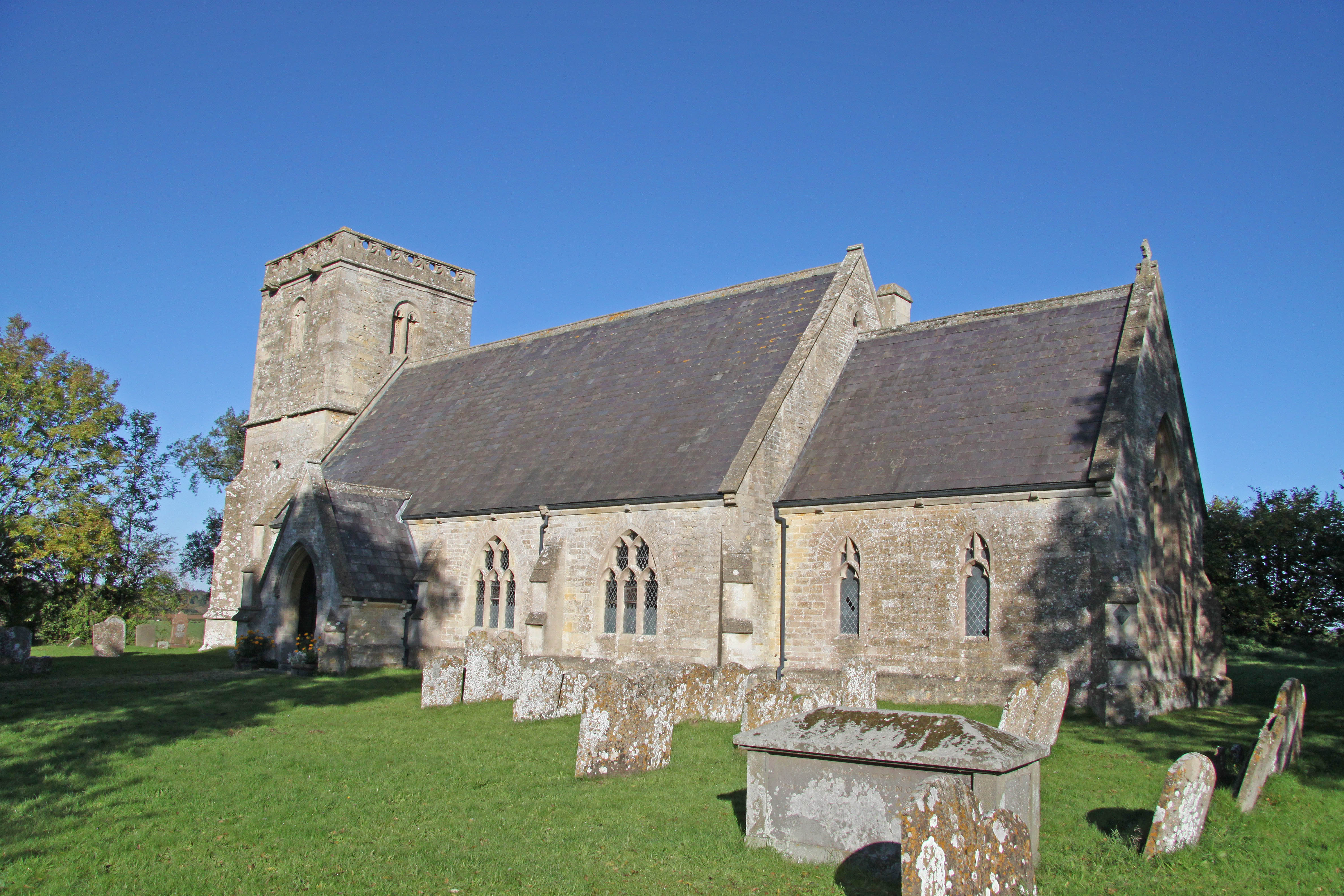 A church was recorded at Garsdon as early as 1265, and the living remained a rectory. Lea church was annexed to it by 1650. All Saints’ Church, consisting of a nave, a chancel, south porch and tower, was thought to be 13th century. The tower is now the only part that dates from before 1856. The earlier building had chancel and nave windows dating from the 14th and 15th centuries. The lower part of the tower was 15th century as was the porch and the upper part of the tower was added in the 16th century. The nave and chancel, built in 1856 to designs by Coe and Goodwin, was taller and wider than the original with 15th century style windows. The chosen material was coursed rubble with ashlar dressings.