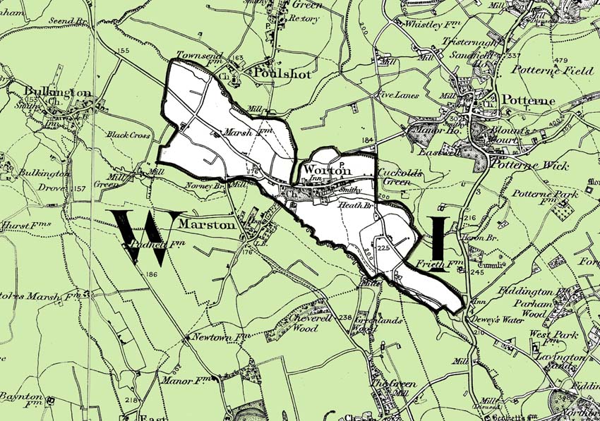 From the Ordnance Survey 1890s revision of the one inch to one mile map. The modern parish boundary has been superimposed.