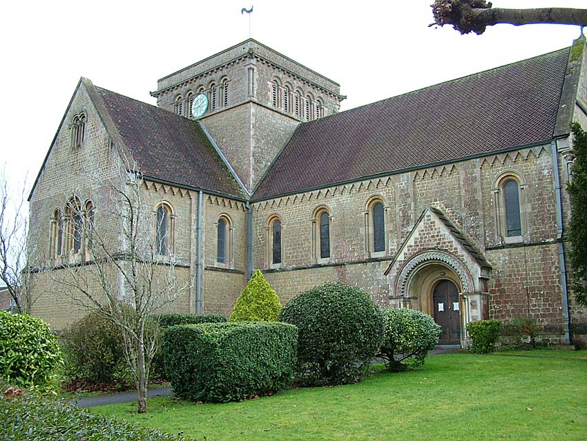 The village of Dilton Marsh seems to have been first established in the 18th century and there were probably non-conformist meetings here. The village quickly became more populous and important than Dilton and in 1843-4 a church was built here after a lengthy search for a piece of land, which was eventually bought for £420. An amount of £3,602, mostly given by Thomas Henry Hele Phipps, was raised by subscription and the church itself cost £2,400, although the total, including site cost, endowment, repair fund, schoolroom and parsonage house, came to £4,600. The church was designed by T.H. Wyatt and built by William Brown of Frome. It is in ashlar, in the 12th century style, with an apsidal chancel, a nave, north and south transepts and a vestry. The tower rises one stage above the tiled roof and has two bells. The church attracted a growing congregation and on Census Sunday in 1851 there were 200 at morning service and 300 in the evening.
