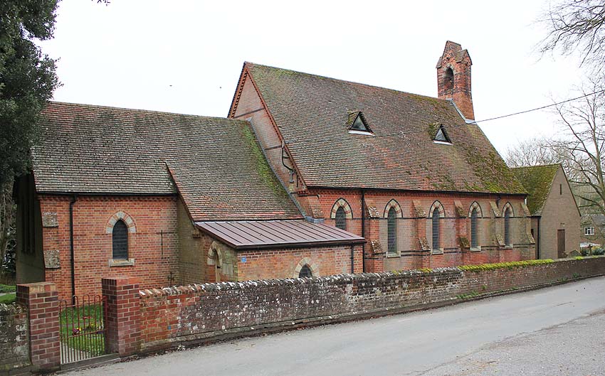 It is a Victorian construction, built in 1875, on land given by George Bourdieu Rogers. He gave £1,500 for the new church. His house was to be used as a vicarage. Mrs Hay also gave £1,500 and held the advowson (the right to appoint the vicar).
