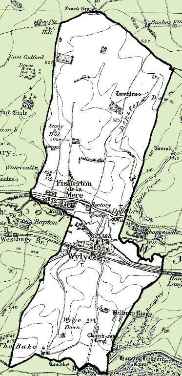 From the Ordnance Survey 1890s revision of the one inch to one mile map. The modern civil parish boundary has been superimposed.