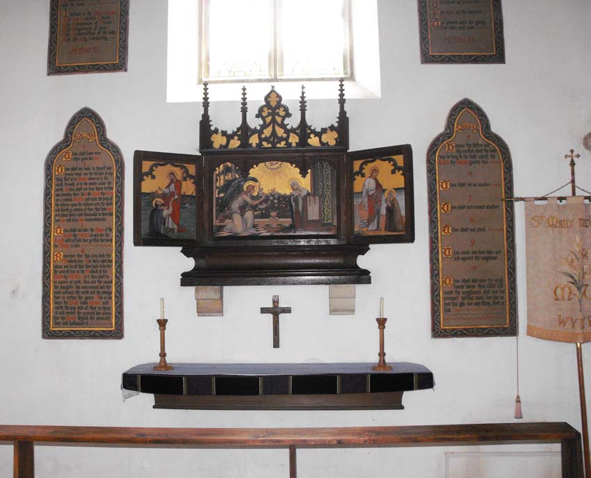 The parish church of St. Mary was extensively rebuilt in 1846. Fragments of an earlier building remain, suggesting a church had been built by 1300. The east window of the chancel survives from this period and there is a blocked 14th century niche over the doorway to the porch.