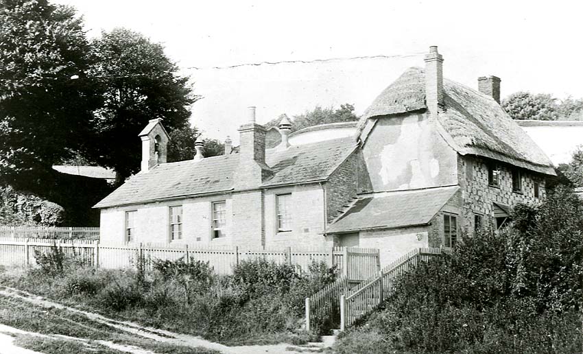 The National School was built in 1865 to accommodate 60 children; the average attendance in 1885 was 49. This tiny school, attached to an existing cottage, was close to the church. The cottage dates from the 18th century, so it is possible that this was the cottage that was lent earlier by John Davis. The building forms an ‘L’ shape, the school being the ‘upright’ stroke. At first the main schoolroom measured 27 feet long by 16 feet 6 inches and the smaller infant room was just 8 feet by 16 feet 6inches. By the early 1900s, when presumably the class sizes were more even, the main room was 19 feet 6 inches long and the infant room 15 feet 6 inches. The cottage pantry was on the other side of the schoolroom wall, with the living room and scullery next to it. There were two bedrooms above.