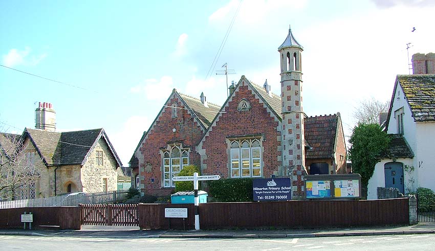 Hilmarton School was built in 1851 and was officially opened on a very wet day, 16th October that year. Thomas Poynder laid the foundation stone and there was a large attendance of clergy at the opening ceremony. The building project was completely funded by Thomas Poynder and constructed using locally made bricks and Bath stone dressings with clay Roman roof tiles. The building was designed by Henry Weaver along with much of the other Victorian village architecture. On construction it was described as having ‘two spacious rooms with open framed roofs of lofty pitch each having a porch entrance and large closet.’ At the south-west corner ‘a bold and massive buttress forty feet tall with a lantern containing a fine toned bell surmounted by a spiral roof with appropriate vane and monogram’. . In 1858 the Warburton School census reported that ’30 to 40 scholars, mixed, are taught by an intelligent mistress. The school had a boarded floor and wall desks and was said to have a tidy and comfortable appearance.