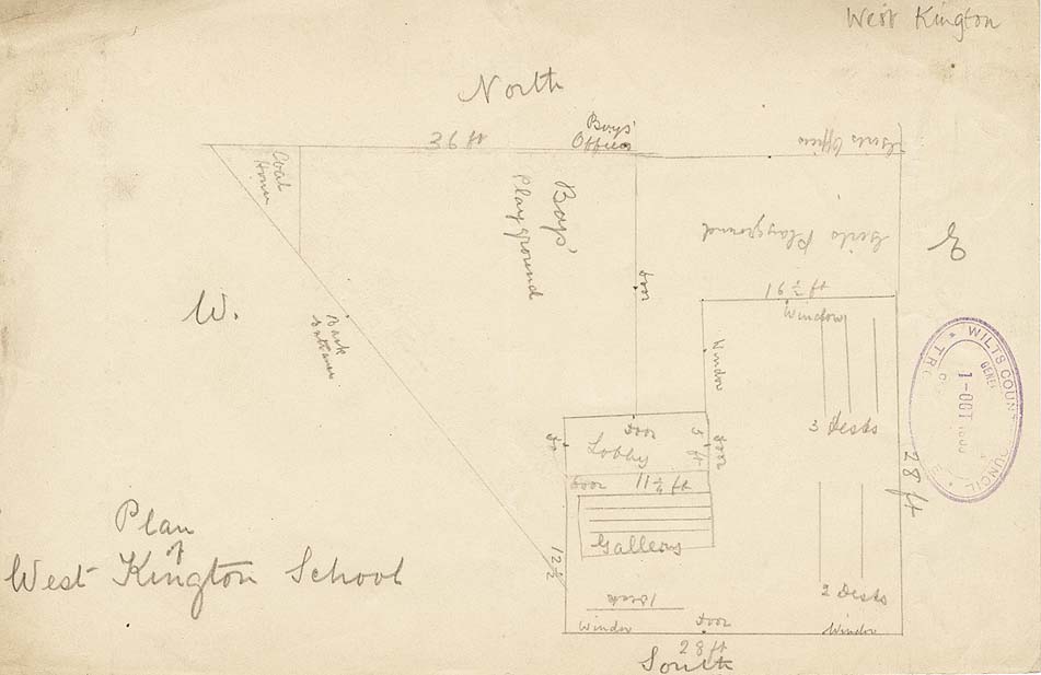 Richard Bennett made a bequest for a schoolmaster at West Kington and in 1841 a school was provided for 72 children. In 1846 there were 24 children in the Sunday and Day School and they were supported by the rector. A mistress taught the 50 children who attended the Day School in 1858 and a few also went to Castle Combe School. There were 30 pupils in 1907 and in 1955 this voluntary controlled school had 16 pupils. By 1920 it was an elementary mixed school with an average of 30 pupils; Miss Mary Familoe was the mistress in 1920 and had been at the school since at least 1889.
