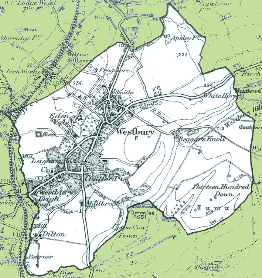 From the Ordnance Survey 1890s revision of the one inch to one mile map. The civil parish has been superimposed.