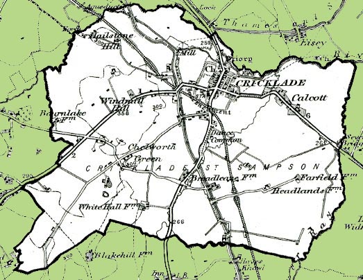 From the Ordnance Survey 1890s revision of the one inch to one mile map. The modern civil parish has been superimposed.