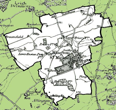 From the Ordnance Survey 1890s revision of the one inch to one mile map. The modern civil parish has been superimposed.