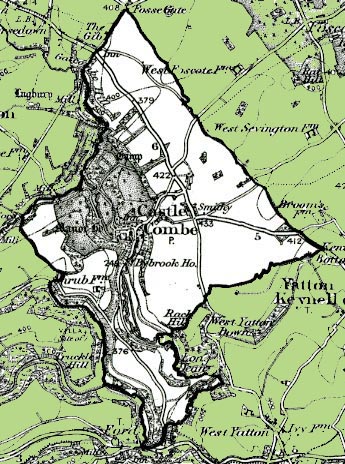 From the Ordnance Survey 1890s revision of the one inch to one mile map. The modern civil parish has been superimposed.