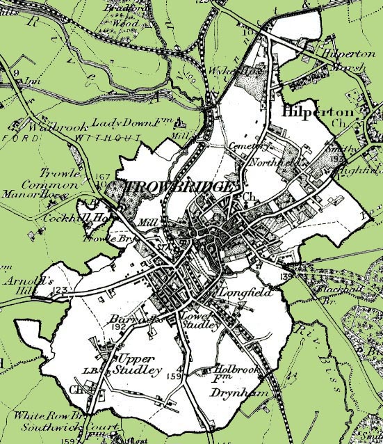 From the Ordnance Survey 1890s revision of the one inch to one mile map. The modern civil parish has been superimposed.