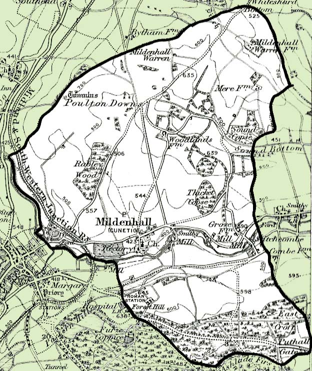 From the Ordnance Survey 1890s revision of the one inch to one mile map. The modern civil parish boundary has been superimposed.
