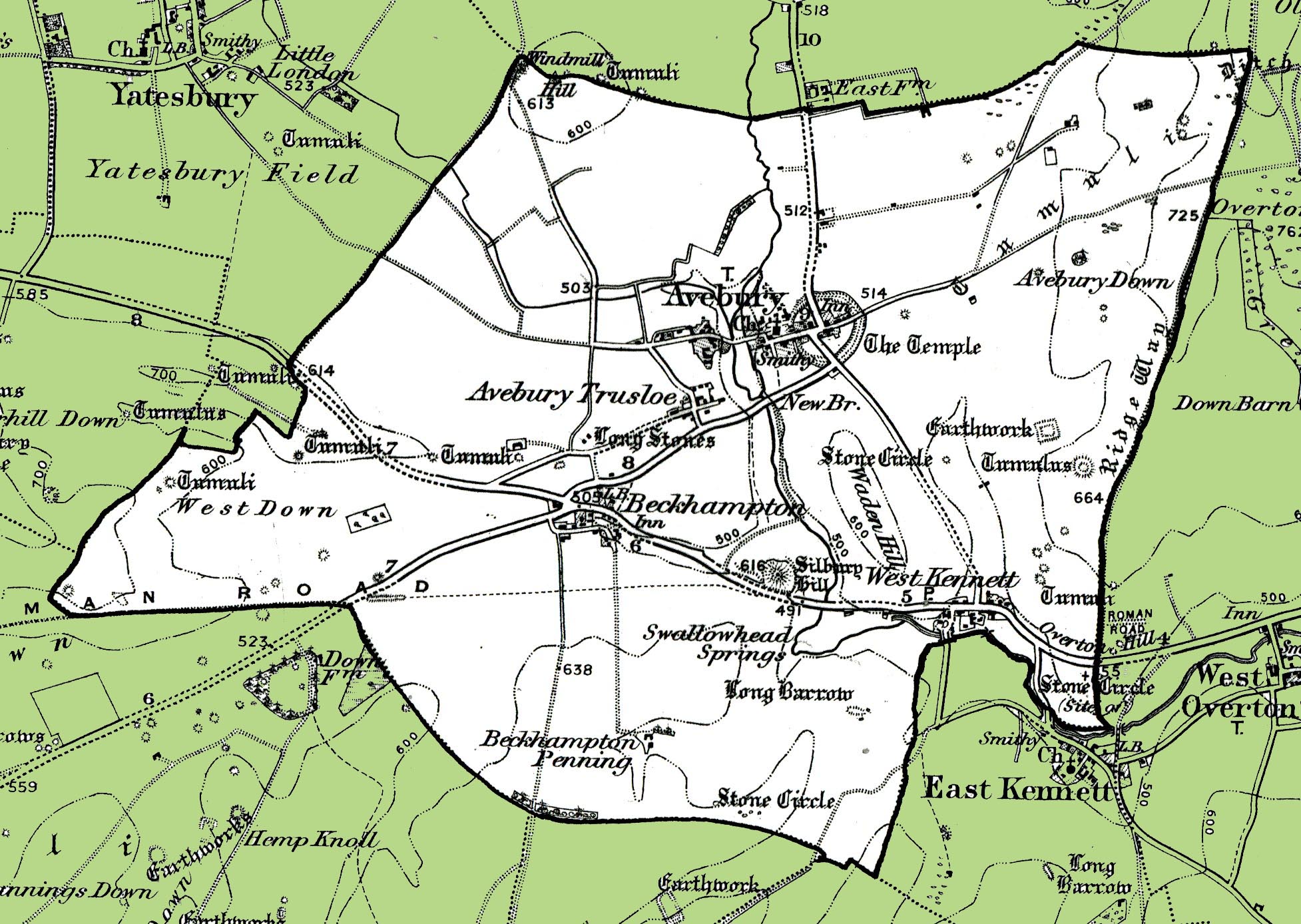 From the Ordnance Survey 1890s revsion of the one inch to one mile map. The modern civil parish boundary has been superimposed.